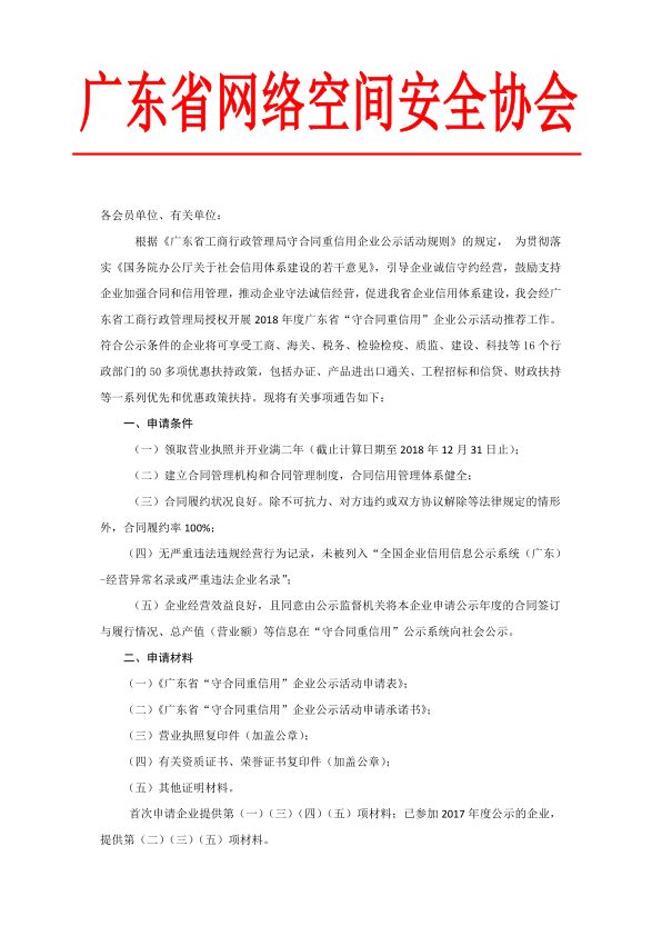 协会通知┃我会开展2018年度广东省“守合同重信用”企业公示活动推荐工作的通知
