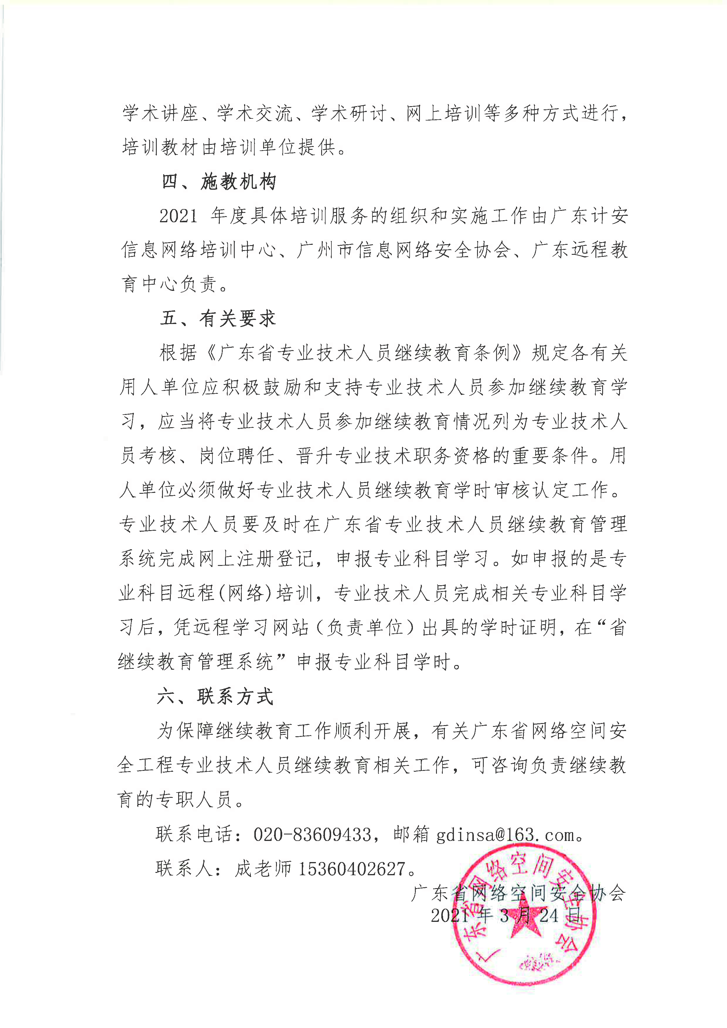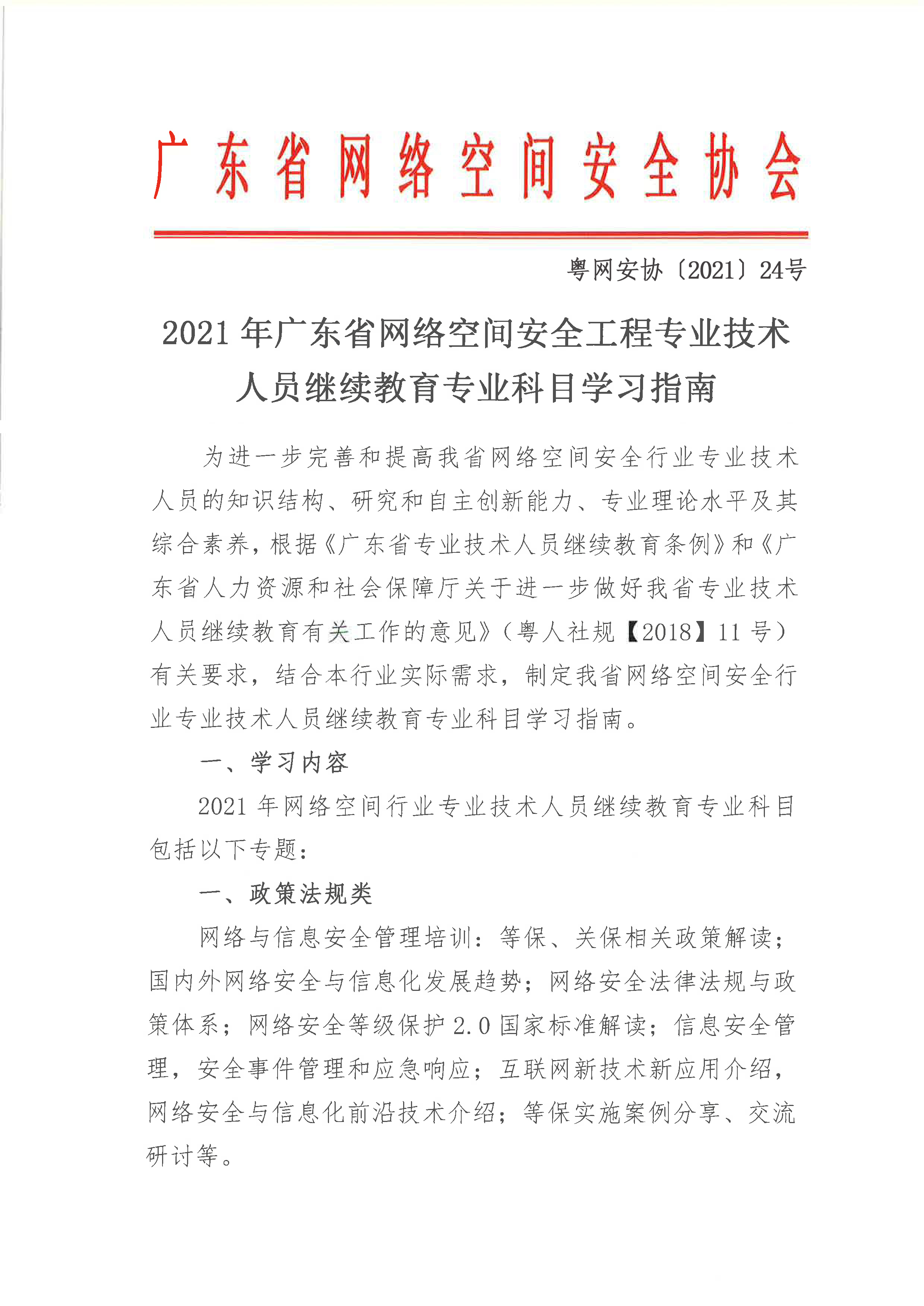 2021年广东省网络空间安全工程专业技术人员继续教育专业科目学习指南