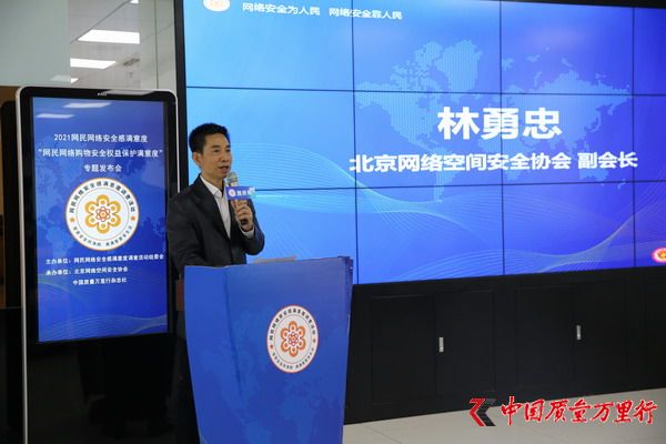 北京网络空间安全协会副会长林勇忠在致辞中对今天到场的嘉宾表示感谢,他肯定了举办此次发布会的意义,强调网络购物权益保护对提升网民在网络空间的安全感、幸福感、获得感方面具有重要意义,他呼吁,社会各界与更多民众参与2022年网民网络安全感满意度调查,共同清朗网络空间,保护消费者权益。