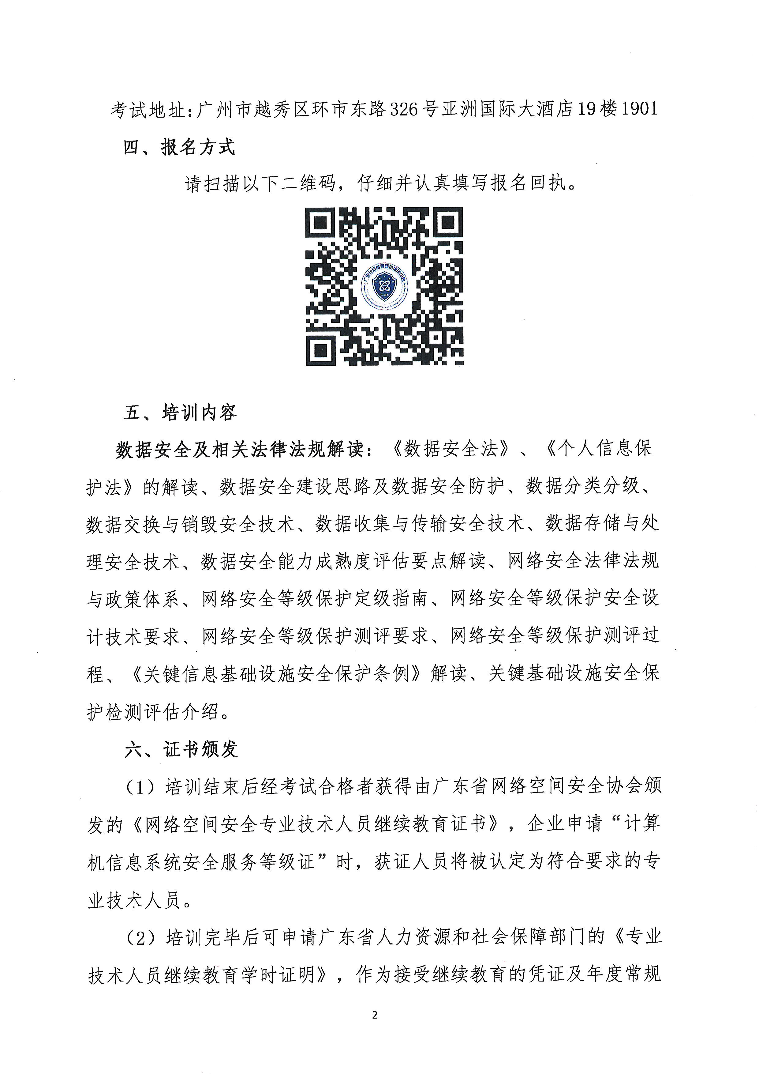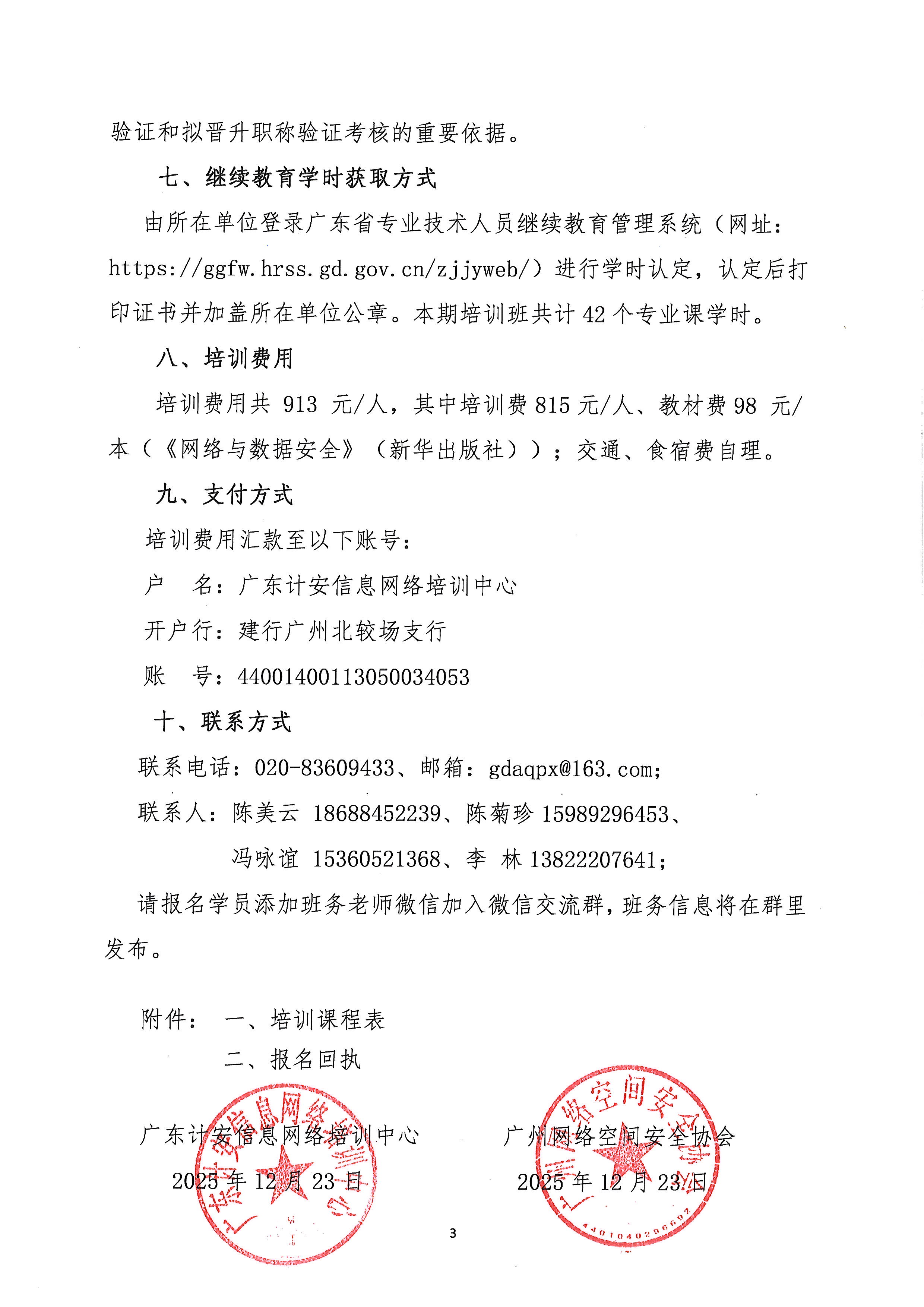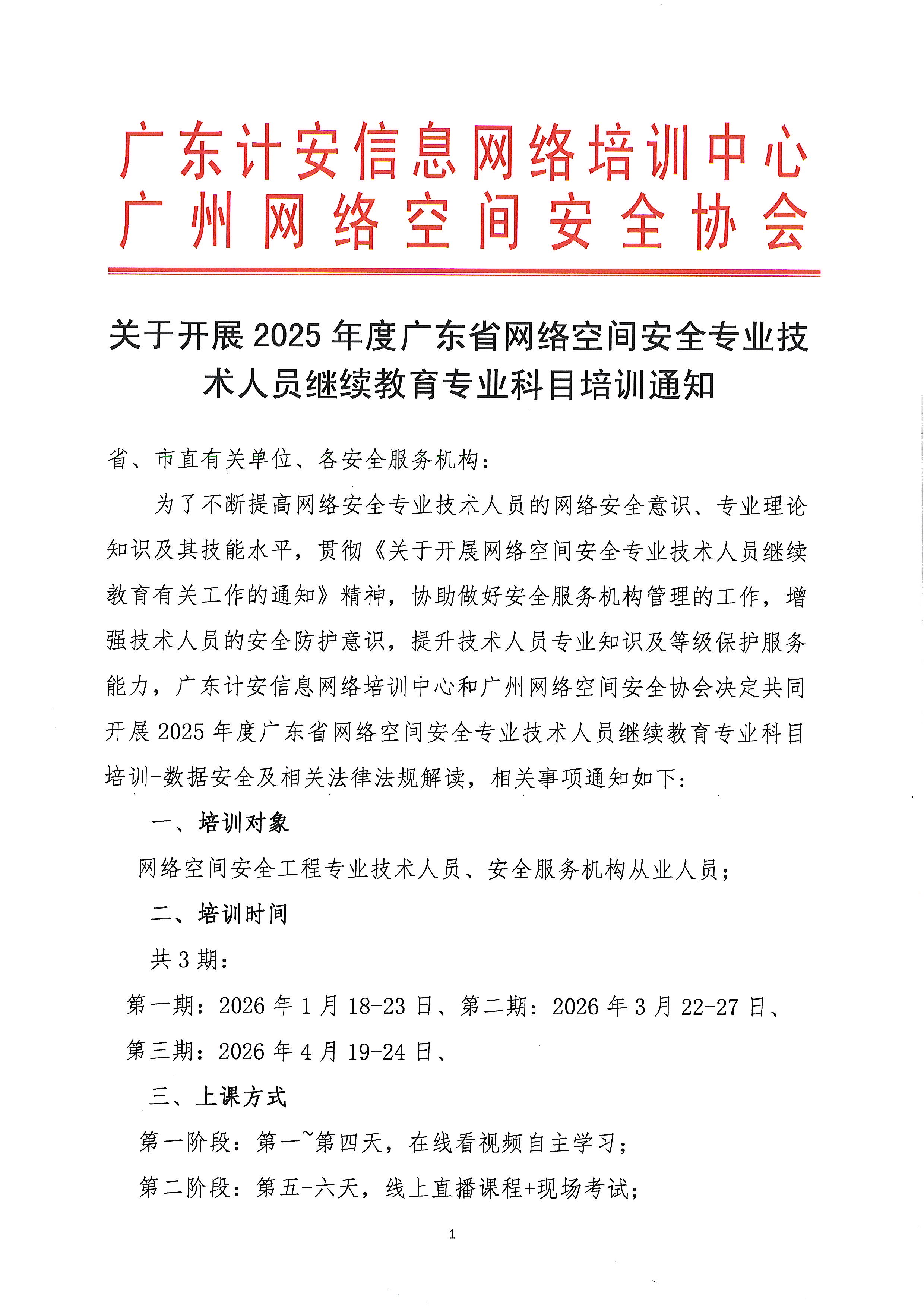 关于开展2025年度广东省网络空间安全专业技术人员继续教育专业科目培训通知